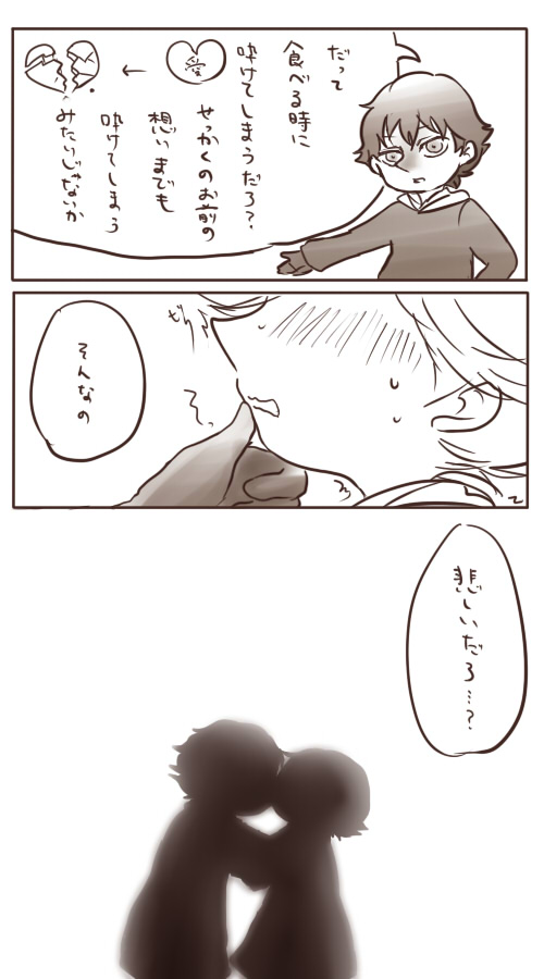 実はこの後、じゃぁ僕のミルク(not下ネタ)に君の愛(チョコ)を溶かして一緒にしよう的な続きがあったんですが、更に頭おかしんじゃねと我に返ったのでやめました。