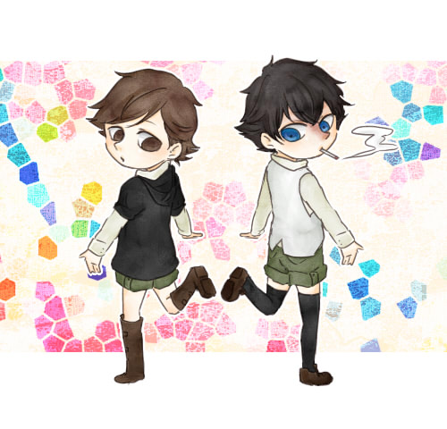 バナの元絵、実は趣味丸出し私服絵だったので全体を晒すか迷っていたんですが色塗ったのでお披露目。
