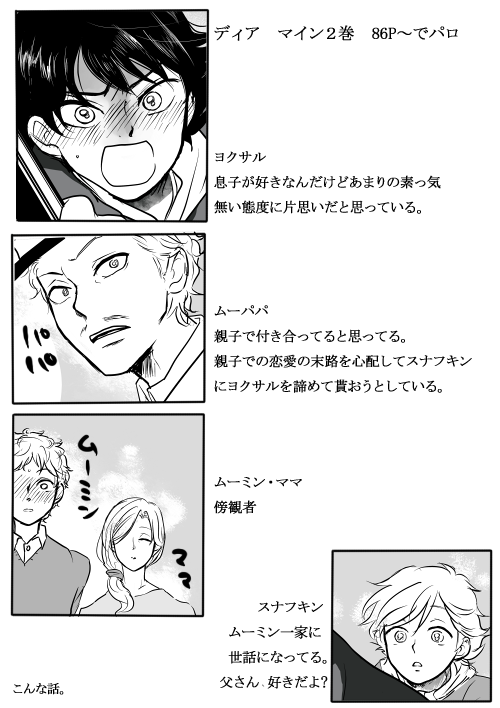 普通の親子見たかったのに腐向けっぽいの出てきてぎょっとしたお姉様、お嬢様方には申し訳ないです。